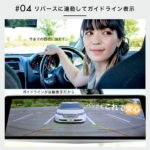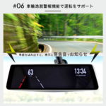 9.9インチ、前後2カメラ、FullHDD同時録画、GPS(地図、方角、走行速度)、Gセンサー、駐車監視機能、LDWS(車輪逸脱警報機能)、WDR機能、ナイトビジョン、地デジノイズ干渉対策済