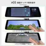 操作は画面を指でタッチするだけ。Gセンサーの感度や画面の明るさなど、多数の設定項目は全て画面タッチ式で、シンプルで使いやすい設計になっています。リアカメラの角度も、ミラーモニターをフリックするだけで上下に移動。誰でも簡単に操作できるから、機械が苦手な女性や高齢者の方にも安心です。